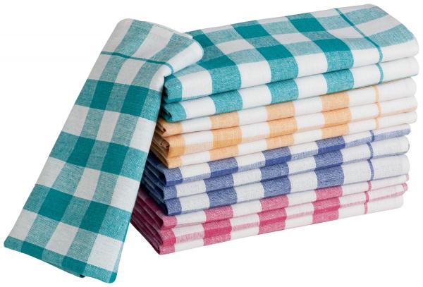 100% pamuk, 60 g/komad, 60 °C pranje. Peškir za čaj sa dizajnom provere. Svestran. Isporučuje se u pakovanju sa po tri crvena, plava, zelena i narandžasta čajna peškira. Sušenje je moguće.