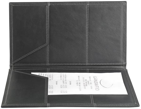 Stil je kada je svaki detalj ispravan! Opremite svoje uslužno osoblje ovom elegantnom i lijepom fasciklom za račune Ima veliku pregradu za novčiće, pet pregrada za novčanice kao i pregradu sa patent zatvaračem. Moderan detalj su sivi ukrasni šavovi. Pored toga, tu je jednako kvalitetan džep za držač kao i fascikla za naplatu.