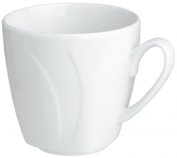 Klasično-elegantna šolja podržana je čistim, gotovo ugaonim oblikom, koja se može harmonično kombinovati i svečano ukrasiti. Može se prati u mašini za suđe i može se koristiti u mikrotalasnoj pećnici.