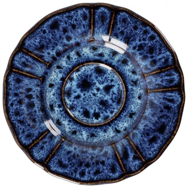Šareni tanjir za kafu sa starinskim šarmom. Diskretni reljef i razigrani ukrasni rubovi daju nostalgičnu notu. Jedinstvena boja zahvaljujući reaktivnoj glazuri. Svaki komad je jedinstven. Može se prati u mašini za sudove i može se koristiti u mikrotalasnoj pećnici.