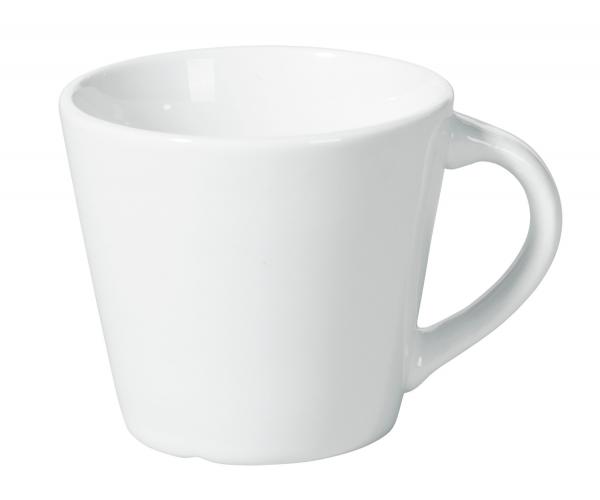 Bijela šolja napravljena od porcelana. Može se prati u mašini za suđe i može se koristiti u mikrotalasnoj pećnici!