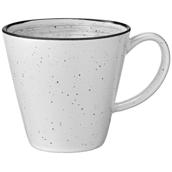 Espreso šolja iz porcelanske serije Fungio napravljena od hotelskog porcelana visokog kvaliteta.Bijela sa crnim obodom i malim, nepravilnim tačkama. Moderan vintage izgled. Može se prati u mašini za suđe i može se koristiti u mikrotalasnoj pećnici.