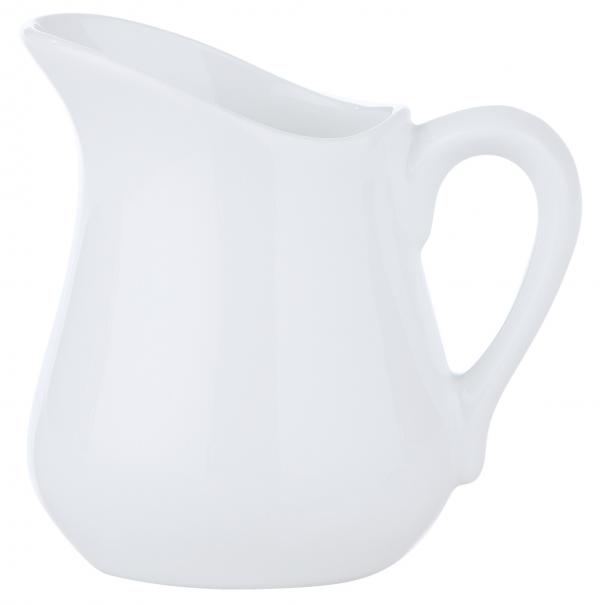 Bijeli porculanski bokal sa ručkom, veoma jednostavnog dizajna. Može se prati u mašini za suđe i može se koristiti u mikrotalasnoj pećnici.