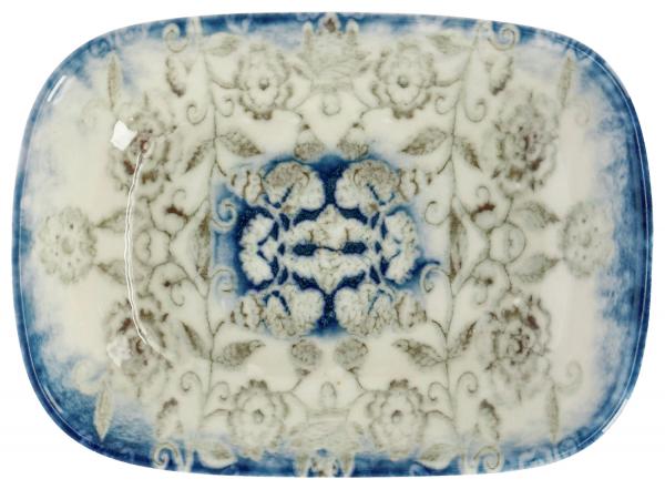 Šarena porculanska posuda sa vintage dekorom u digitalnoj štampi. Kvadratnog oblika. Može se prati u mašini za suđe i može se koristiti u mikrotalasnoj pećnici.