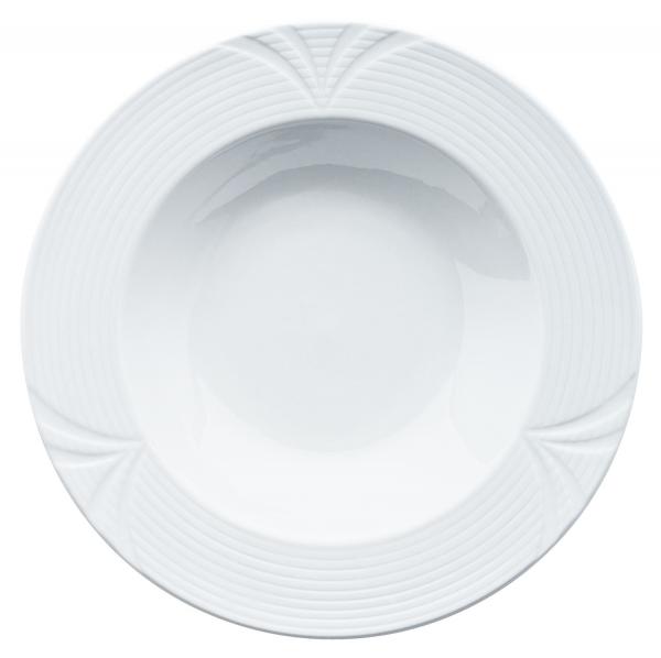 Elegantno posuđe napravljeno od bijelog hotelskog porcelana. Sa finim reljefom na rubu. Može se prati u mašini za suđe i može se koristiti u mikrotalasnoj pećnici.