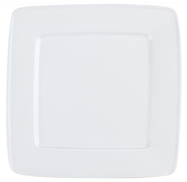 Moderno posuđe od bijelog hotelskog porcelana, modernog kvadratnog oblika. Posebno stabilan zbog ekstra čvrste glazure. Sa glatkim rubom. Može se prati u mašini za suđe i može se koristiti u mikrotalasnoj pećnici.