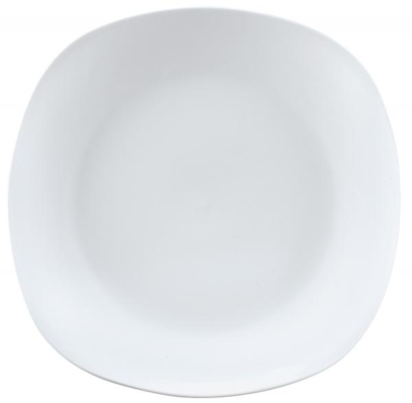 Moderni bijeli tanjiri od čvrstog hotelskog porcelana. Bez ruba. Može se prati u mašini za suđe i može se koristiti u mikrotalasnoj pećnici.