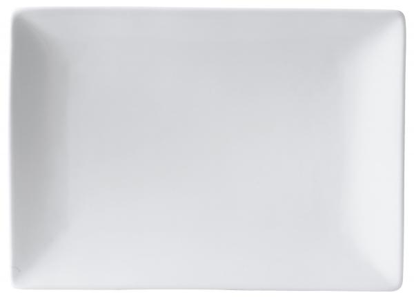 Moderni bijeli tanjiri ugaonog oblika. Napravljen od sjajnog, čvrstog hotelskog porculana. Može se prati u mašini za suđe i može se koristiti u mikrotalasnoj pećnici.