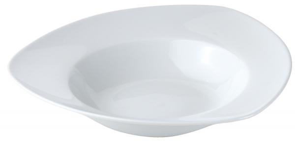 Izuzetno dubok tanjir od bijelog porcelana. Za tjesteninu ili salate, deserte i glavna jela. Sa glatkim, blago kosim rubom. Može se prati u mašini za suđe i može se koristiti u mikrotalasnoj pećnici.