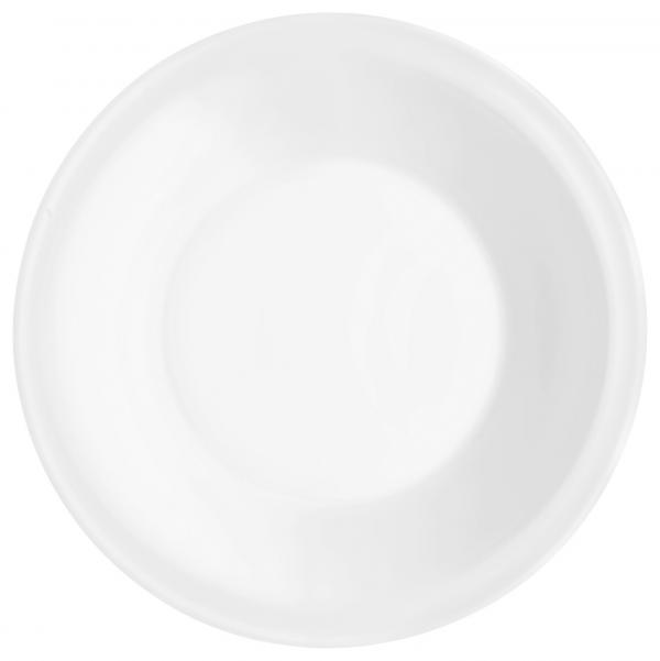 Moderni,bijeli tanjir napravljen kaljenog stakla. Otporan na udarce. Može se slagati, može se koristiti u mikrotalasnoj pećnici i može se prati u mašini za suđe.