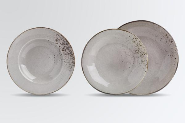 Set se sastoji od četiri ravna tanjira Ø 23,5 i 26,5 cm i tanjira dubokih Ø 24 cm svaki.Posuđe izgleda ručno rađeno sa svojim nepravilnim ivicama.Boja: siva. Može se prati u mašini za suđe i može se koristiti u mikrotalasnoj pećnici.