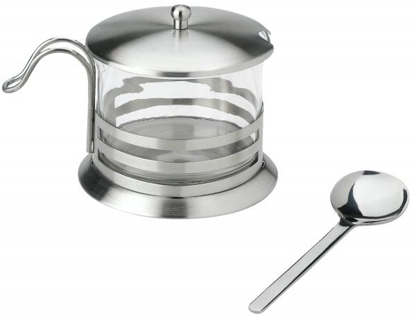Elegantna kutija sa poklopcem od hrom-nikl nerđajućeg čelika 18/10, otporna na rđu. Stakleni umetak za sir. Može se prati u mašinama za suđe. Isporuka uključuje kašiku od hromiranog nerđajućeg čelika 18/0, otpornu na rđu.