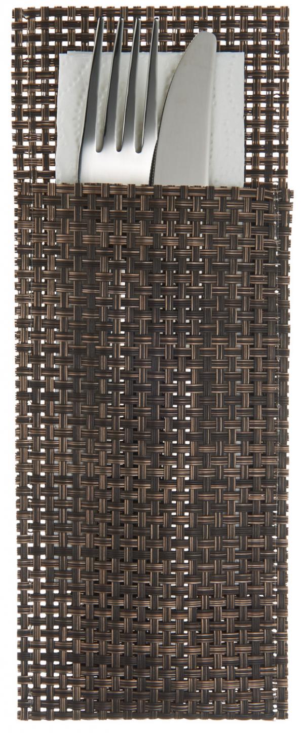 70% PVC, 30% poliester. Ove vreće za pribor za jelo higijenski štite pribor za jelo i salvete od prljavštine, jednostavne su za pripremu i upotrebu. Otpornost na toplotu - 50° do 60°C. Može se prati u mašini za sude do maks. 60°.