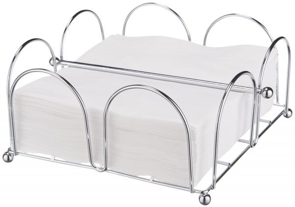 Stabilan držač salveta napravljen od hromiranog metala. Za oko 100 salveta u 1/4 puta. Dostava bez salveta.