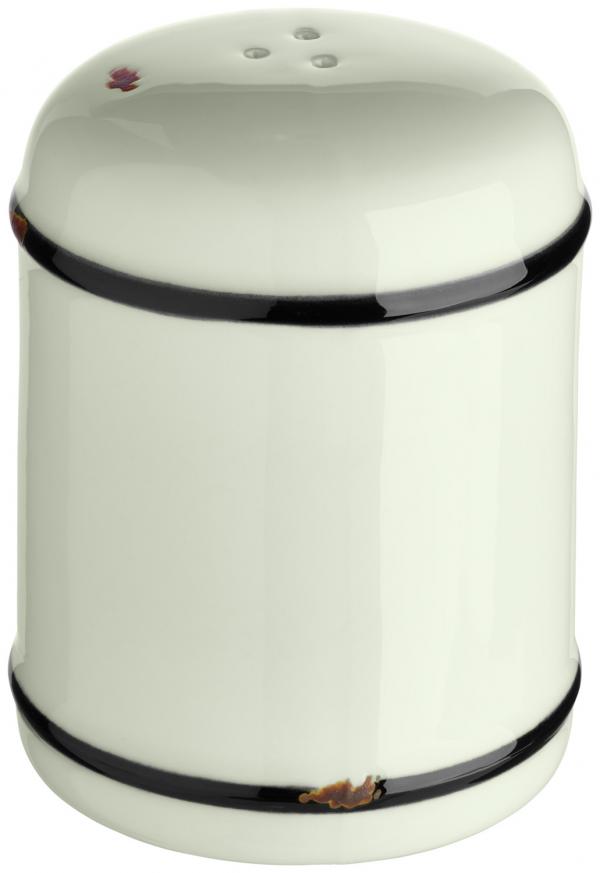 Šejker za biber sa retro dizajnom. Sa malim čipovima na felgama i spoljnim površinama kako bi se naglasio vintage dizajn stolnog posuđa. Materijal: porcelan. Može se prati u mašinama za suđe i koristiti u mikrotalasnoj pećnici.