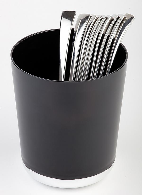 Posuda sa hromiranim obodom. Dostupno u crnoj i beloj boji.
