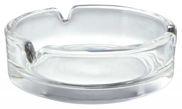 Obična pepeljara od prozirnog stakla, sa tri ureza za cigarete. Može se prati u mašinama za suđe!