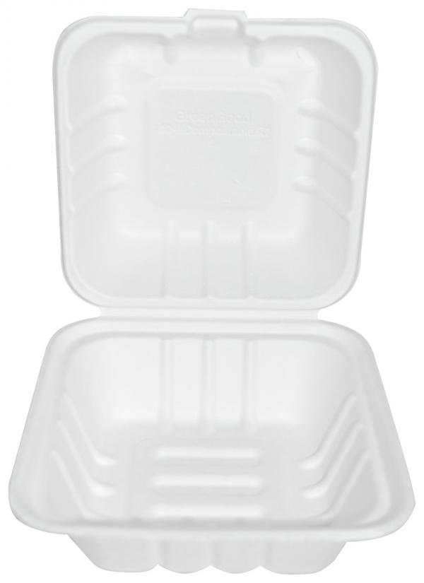 Napravljena od visokokvalitetnog, ekološki prihvatljivog bagasa. Kutija je oblikovana, lagana, a opet stabilna. Vodootrpona, otporna na masti i ulje, otporna na toplotu i hladnoću, mikrotalasna do 90 °C.