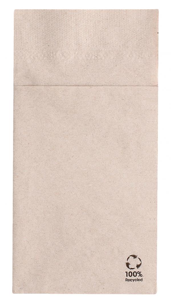 Torba za pribor za jelo od 100% recikliranog papira. Potpuno biorazgradiv i kompostabilan. Dobra sposobnost upijanja. Otporan na suze. Dvoslojni.