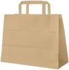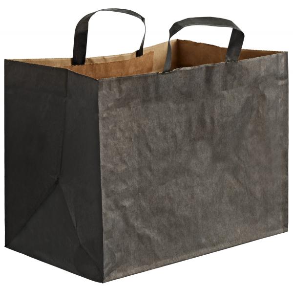 Papirna kesa koja se može reciklirati, sa ravnim ručkama.Crna spolja, braon unutra. Izdržljiva i za višekratnu upotrebu. Opterećenje do 4 kg.