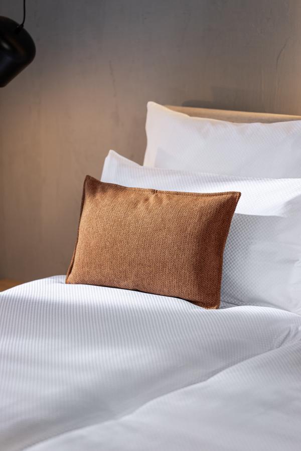 ##Pillowcase Padaro - High quality damask for hotel use The Padaro pillowcase was specially made for the discerning hotel sector. Made from 100% cotton in a high-quality damask weave with a 5 mm check pattern, it impresses with its elegant appearance and particularly smooth, dense surface. The thread density of 300 threads per inch ensures a durable, hard-wearing fabric that retains its softness and elegant lustre even after several washes. The side hotel fastening with bow dart makes it easy to cover and ensures a perfect fit. Personalisation possible through embroidery. * High-quality damask made from 100% cotton * Weight approx. 115 g/m² * Thread density (thread count): 300 threads per inch * Elegant 5 mm check pattern in high-quality damask quality * Hard-wearing and durable for everyday hotel use * With hotel fastening and bow dart (for sizes 70x90 cm and 80x80 cm) * Easy to care for and resistant to ironing * For maximum sleeping comfort and an elegant look Info: The product reaches its final size after three washes, as the fibres still contract during the first wash (shrinkage).