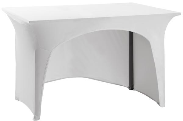 Prilagodljiva elastična navlaka sa jednim udubljenjem za uglaste banket stolove. Savršeno prijanja uz sto. Sa ojačanim kapicama za nogare. Ne peglа se, postojana na boju i laka za održavanje.