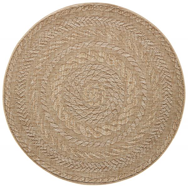 Okrugli tepih ravnog tkanja iz Northrugsa u izgledu jute. Može se koristiti u zatvorenom prostoru kao i na otvorenom. Obrađena vlakna od polipropilena su posebno izdržljiva i otporna na UV zračenje i vlagu. Pogodan i za prostorije sa podnim grijanjem.