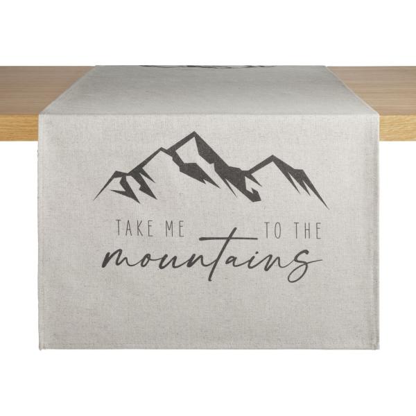 Štampani nadstolnjak sa planinskim motivom i slovima od mešane tkanine. Ultra-jednostavna nega i izdržljiva.