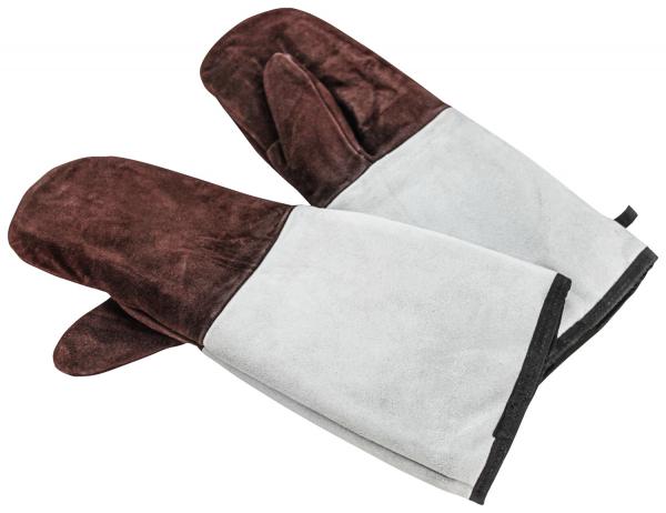 1 par rukavica za pečenje od visokokvalitetne kože. Sa manžetnom. Otporne na toplotu do +250°C. Nije moguće prati u mašini.