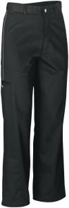 65% poliester, 35% pamuk, 180 g/m², pranje na 60 °C. Crno-bijele muđke kuvarske pantalone sa dva bočna džepa i jednim zadnjim džepom. Pojas sa elastičnim i vučnim žicama.