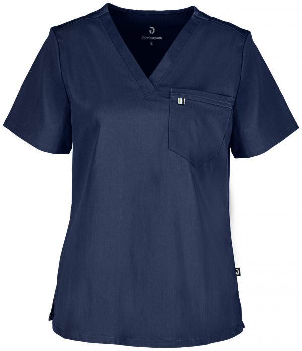 Moderna ženska bluza napravljena od Tencel™ poliesterske tkanine koja je prijatna za kožu i prozračna, koja blago hladi kožu. Lako se oblači i skida kao košulja, a posebno je udobna za nošenje zahvaljujući rastegljivom sadržaju. Sa kratkim rukavima, V-izrezom i džepom na grudima. Blago zaobljen porub sa bočnim prorezima.