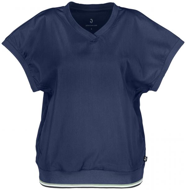 Moderna ženska bluza u stilu dukserica napravljena od Tencel™ poliesterske tkanine koja je prijatna za kožu i prozračna, koja blago hladi kožu. Lako se oblači i skida, a posebno je udobna za nošenje zahvaljujući rastegljivom sadržaju. Slip-on bluza sa kratkim, blago prekrivenim rukavom i V-izrezom sa uskom, elastičnom manžetom. Sa velikim bočnim džepovima. Ležerni kroj i široka, prugasta manžetna na porubu.