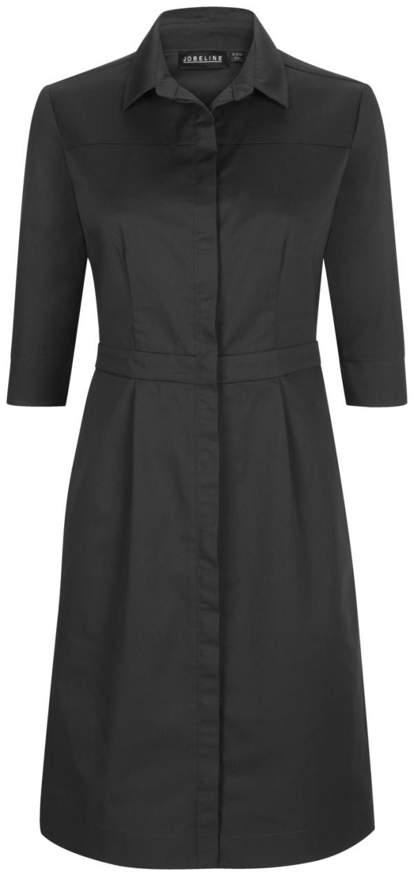 Moderna haljina od lagane miješavine sa tri četvrt rukavima, sa skrivenom kopčom po cijeloj dužini, dva bočna džepa, elastičnim pojasom pozadi i oblikovanim šavovima napred i pozadi.