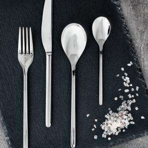 Hrom-nikl nerđajući čelik 18/10, otporan na rđu. Moderna stolna kašika sa tankom, finom drškom. Mirror polished. Debljina materijala 7 mm (mereno na najdebljoj tački viljuške stola). Može se prati u mašini za pranje sudova.