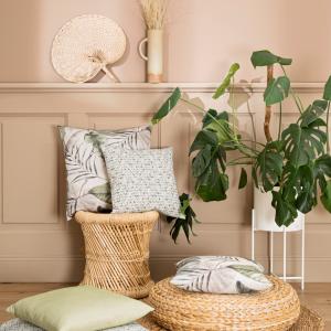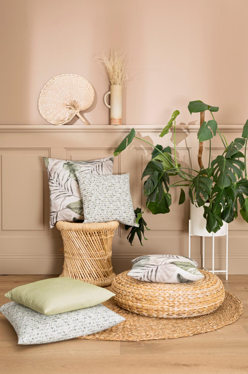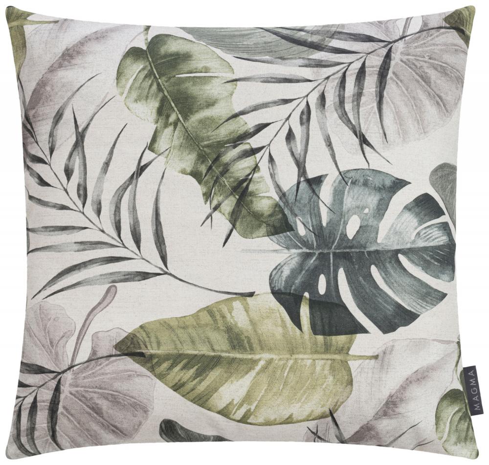 Jastučnica sa tropskim uzorkom. Praktičan rajfešlus za jednostavno uklanjanje i pokrivanje. Isporuka bez punjenja. 50% pamuk, 50% poliester. Održavanje: Pranje na 30°C. 211 g/m.