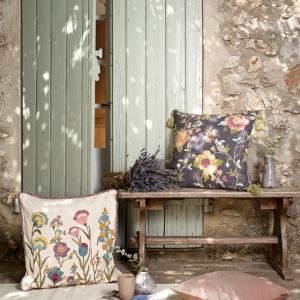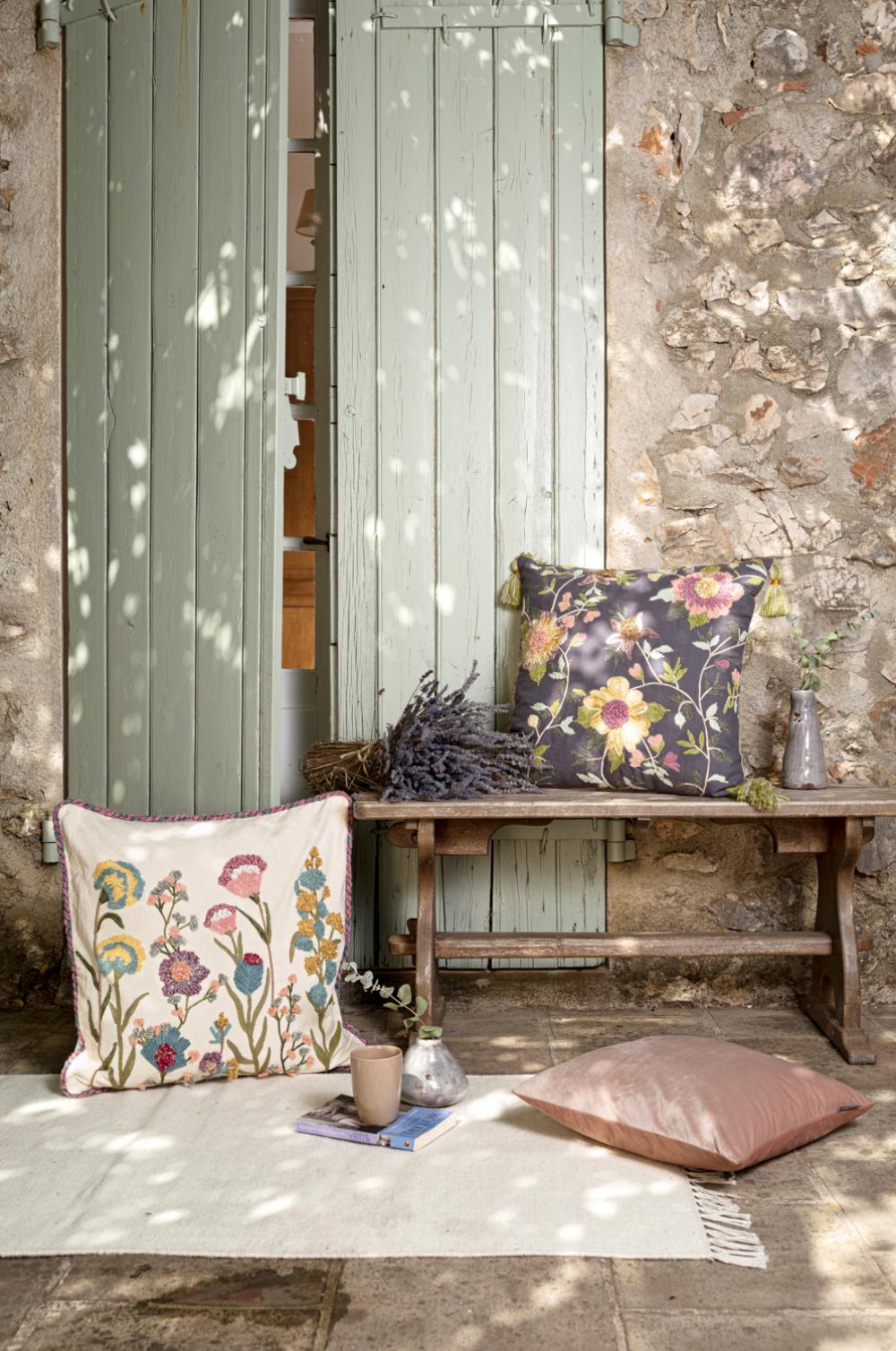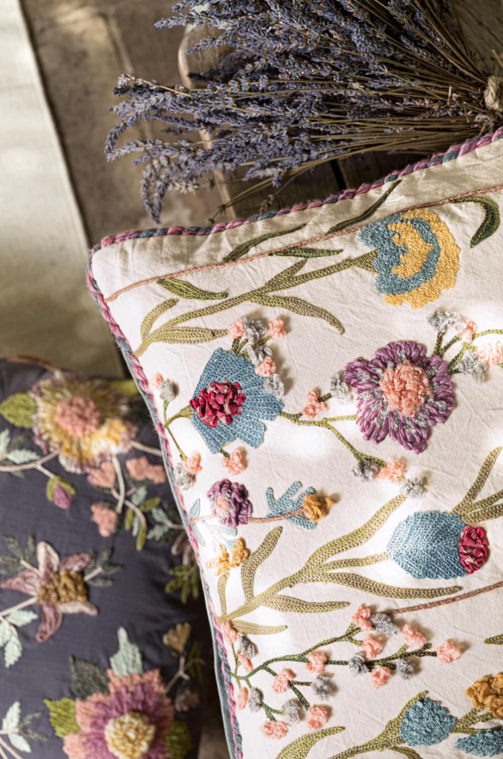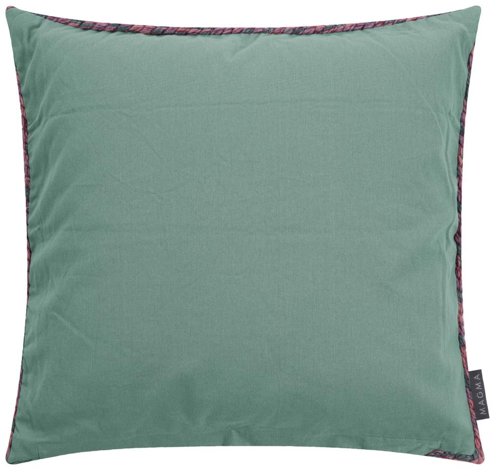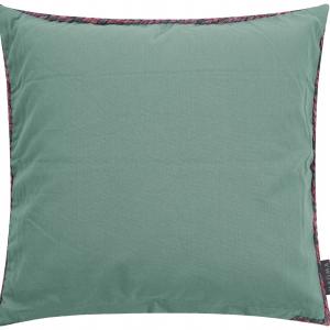 Jastučnica sa detaljnim cvjetnim vezom na prednjoj strani i mentol zelenim leđima. Sa finim cevovodnim granicama. Praktičan zatvarač za jednostavno uklanjanje i pokrivanje. Isporučuje se bez punjenja. 80% pamuk, 10% viskoza, 10% poliester. Pranje ruku. 494 g/m.