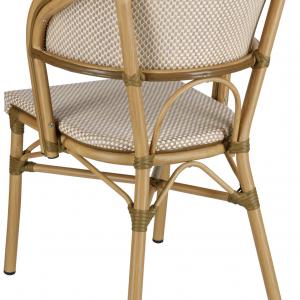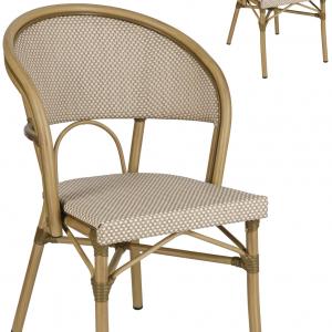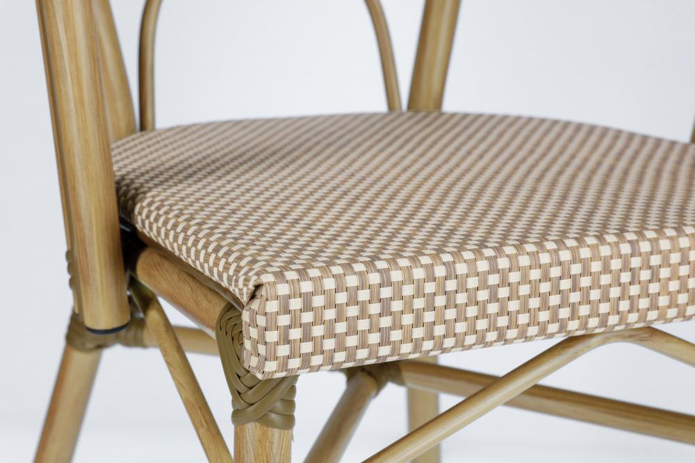 Sa svojim otpornim na vremenske uslove aluminijumskim okvirom i pletenim plastičnim sedištem i naslonom, stolica je i vizuelno privlačna i izuzetno izdržljiva.