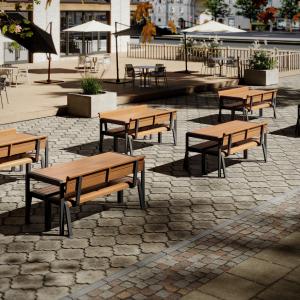 Spoljna klupa od mešavine materijala od aluminijumskog okvira premazanog prahom i FSC® sertifikovanog čvrstog eukaliptusa drveta u izgledu tikovine. Posebno lakiran. Robustan i otporan na vremenske uslove. Inovativni dizajn u kombinaciji sa visokom ergonomijom zahvaljujući zaobljenoj geometriji ivica. Pogodno za unutrašnju i spoljašnju upotrebu. Uređaj za pričvršćivanje uređaja protiv krađe (čelična sajla) sa donje strane. Odgovarajuće Listello klupe se mogu gurnuti ispod stola radi uštede prostora. Isporučuje se rastavljeno, uključujući materijal za pričvršćivanje i plastične klizače za nivelisanje poda. Jednostavna montaža. Naručite tabelu podudaranja u isto vreme.