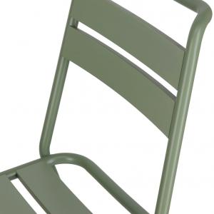 Stolica je potpuno otporna na vremenske uslove i UV zračenje te je idealna za korištenje na otvorenom tokom cijele godine. Visokokvalitetni E-premaz pouzdano štiti od rđe, dok izdržljivi praškasti premaz sprečava ogrebotine i habanje – savršeno za promjenjive vremenske uslove i često čišćenje.