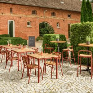 Plastične klizače štite pod i omogućavaju glatko i tiho pomicanje – idealno za prometne terase i barove. Barska stolica se isporučuje sklopljena i spremna za odmah korištenje. Odgovarajuće stolove za ugostiteljstvo ili barske stolove moguće je naručiti istovremeno.