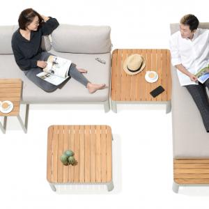 Bočni sto Amalfia je praktičan dodatni sto koji nudi dodatni prostor za skladištenje i prostor za piće ili pribor. Bočni sto u materijalnoj mešavini aluminijuma obloženog prahom i neobrađene, FSC sertifikovane tikovine upotpunjuje asortiman salonske serije Amalfia. Čak i sa malo prostora, ovaj bočni sto dimenzija 47x30 cm sa svojim C-oblikom čini dobru figuru! Zbog svojih kompaktnih dimenzija, ovaj sto je idealan za upotrebu na balkonu. * Neobrađeno FSC sertifikovano drvo od tikovine * Otporno, aluminijum obložen prahom, tako posebno lagan i otporan na vremenske uslove * C-oblik omogućava prevjes sa lounge serijom Amalfia * Prostor-Spašavanje
