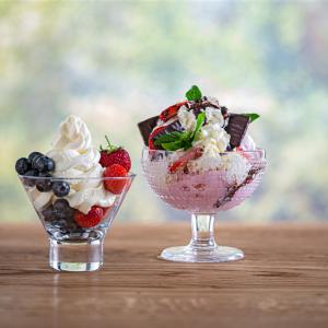 Čaša savršena za male sladolede. Materijal: staklo. Može se prati u mašini za suđe.