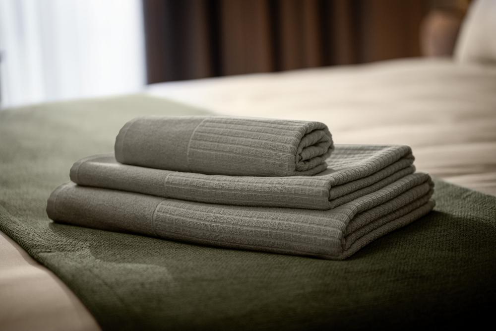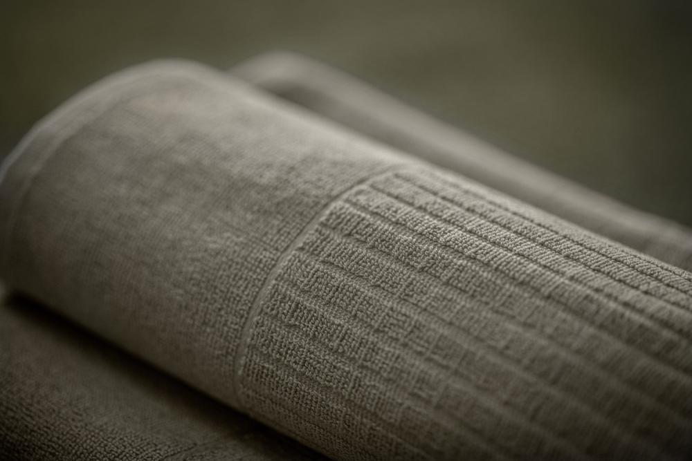 ## Twisted terry towelling Alassio- Durable and absorbent for the wellness area The Alassio shower towel is a twisted terry towelling made of 100% cotton. It is the ideal choice for wellness, spa and hotel bathrooms. The simple checked weave combines an elegant look with high absorbency and durability. Natural colour tones and the 13 cm long plain weave on one side round off the attractive appearance. Thanks to the moderate grammage, cleaning costs are lower. Personalisation possible through weaving or embroidery. * High-quality twisted terry towelling made of 100% cotton * Weight approx. 450 g/m² - durable and absorbent * Woven in an attractive chequered look * 13 cm long plain weave on one side * Particularly suitable for wellness and spa areas, as well as hotel bathrooms * Lower energy costs due to moderate weight * Practical hanging on one of the short sides * High-quality workmanship - seamed with double seams Info: The product reaches its final size after three washes, as the fibres still contract during the first wash (shrinkage).