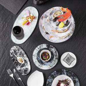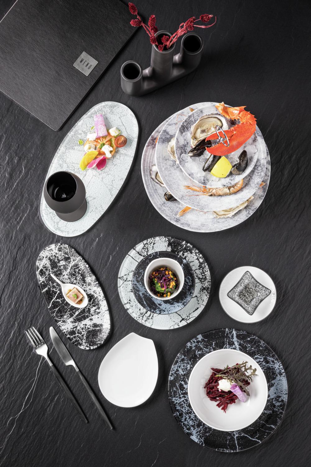 Glass bowl in marbled look. Dishwasher safe.