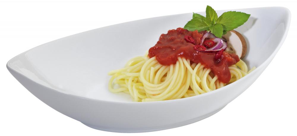 Moderna zdjela od bijelog porcelana. Može se prati u mašini za suđe i može se koristiti u mikrotalasnoj pećnici.
