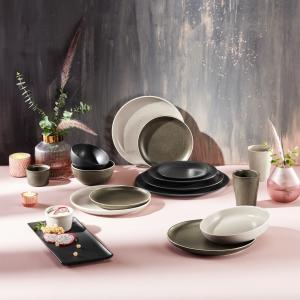 Divna pozornica za vašu hranu! Naša serija posuđa Ossora impresionira svojim kvalitetom i dizajnom. Inspirisani prirodnim materijalima, ravni i duboki tanjiri, činije i šolje izrađeni su od visokokvalitetnog kamena. Dostupne su u dvije boje. Svi dijelovi se mogu divno kombinovati jedni sa drugima i tako iznova i iznova stavljati nove akcente na postavljeni sto.