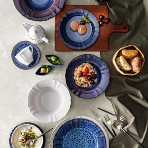 Šareni tanjir za kafu sa starinskim šarmom. Diskretni reljef i razigrani ukrasni rubovi daju nostalgičnu notu. Jedinstvena boja zahvaljujući reaktivnoj glazuri. Svaki komad je jedinstven. Može se prati u mašini za sudove i može se koristiti u mikrotalasnoj pećnici.