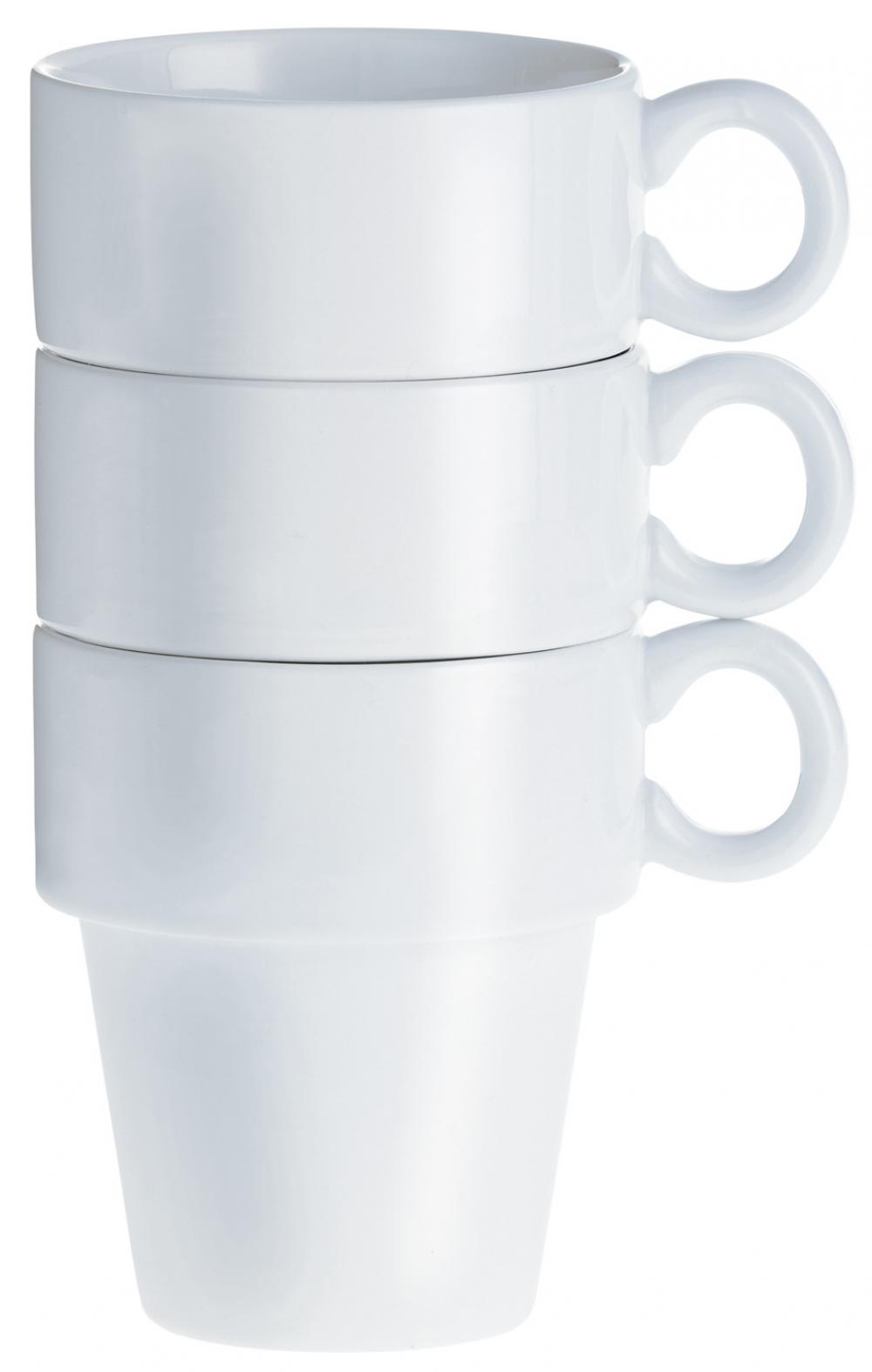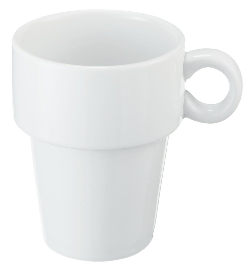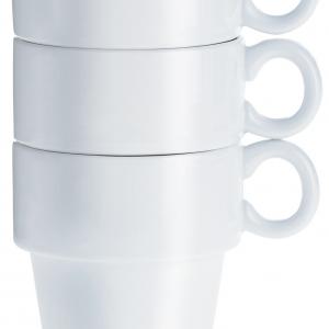 Stabilna bijela porcelanska šolja u jednostavnom obliku. Može se prati u mašini za suđe i može se koristiti u mikrotalasnoj pećnici.