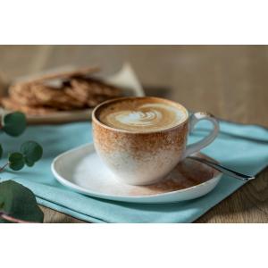 Šolja za kafu iz porcelanske serije Purior. Hotelski porcelan visokog kvaliteta. Nepravilni, organski oblici. Dostupno u dvije prirodne boje. Može se prati u mašini za suđe i može se koristiti u mikrotalasnoj pećnici.