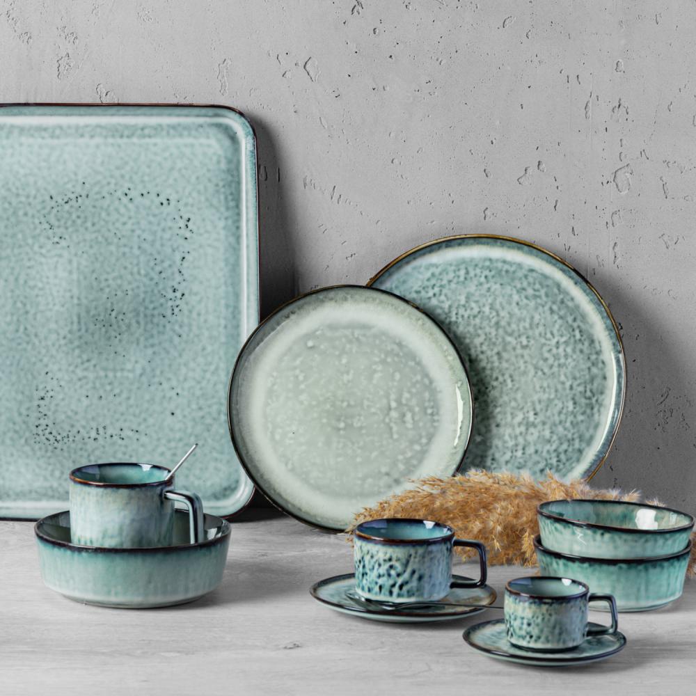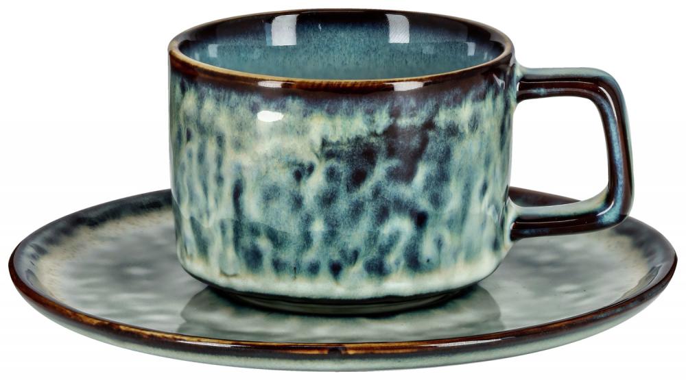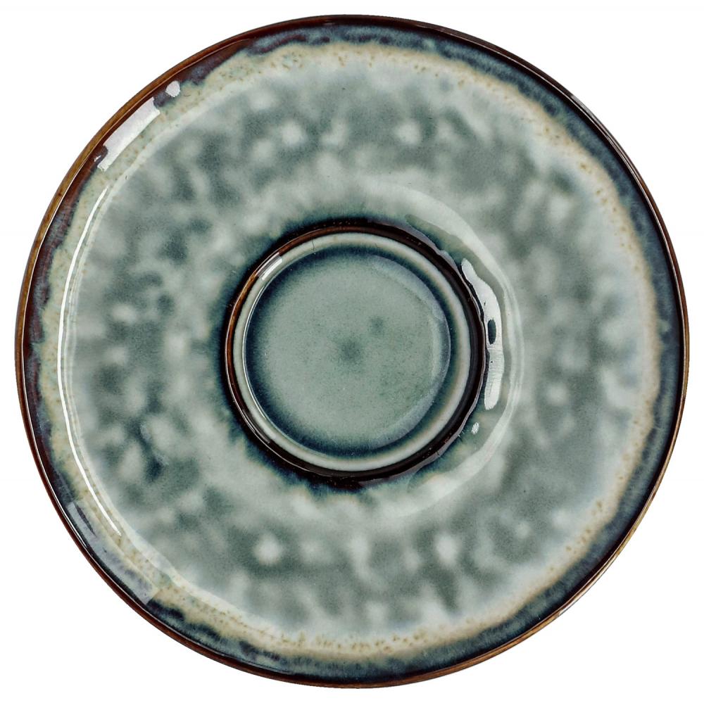 Tanjirić za espresso od kamena u boji sa modernim dizajnom reaktivne glazure.Svaki komad je unikat. Pogodno za mašinu za pranje sudova i za mikrotalasnu.